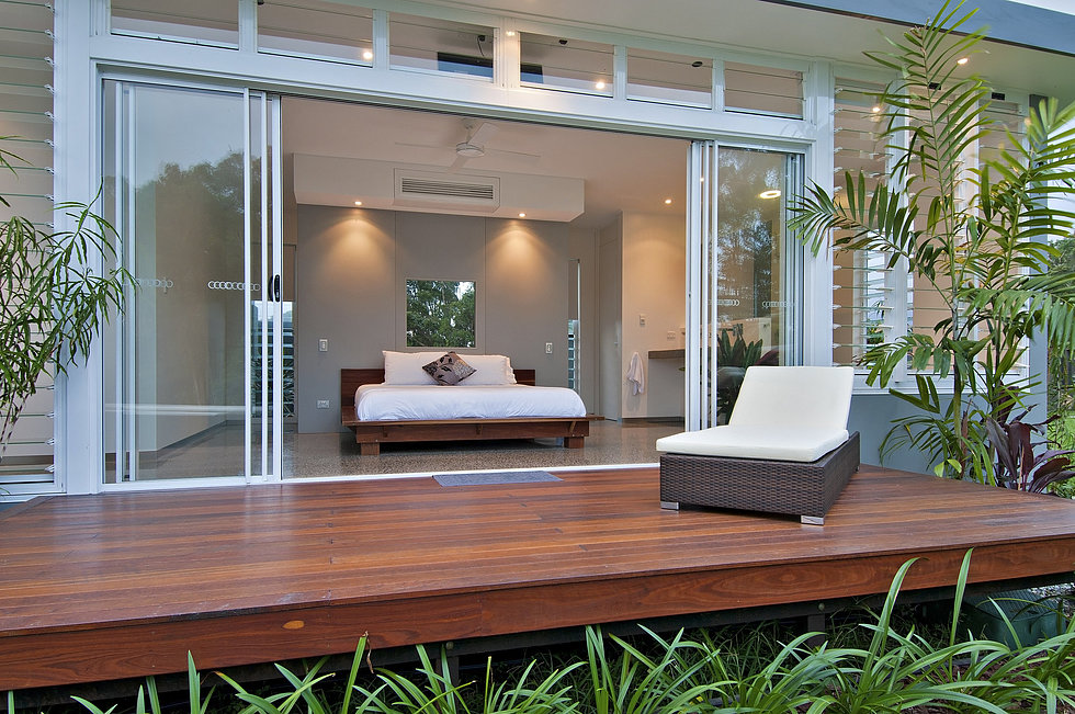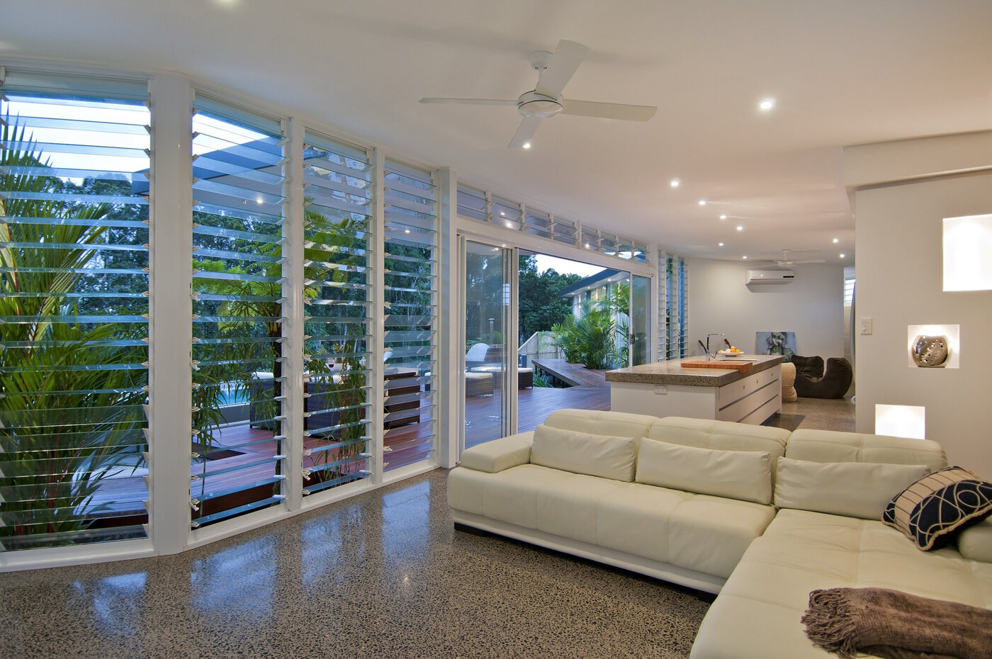 Extensive joinery and glazing couple the internal and external living environments though seamless glass and tropical landscaping.