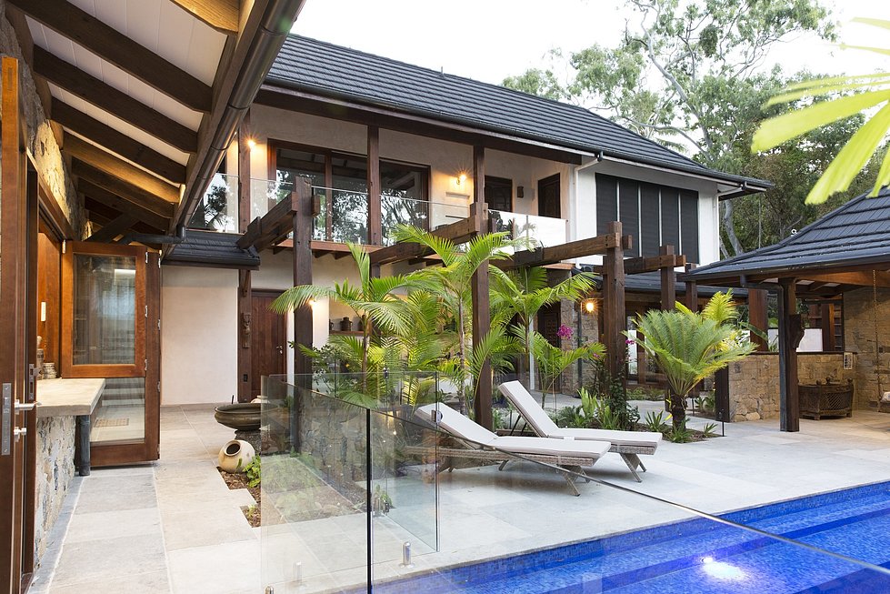 The client’s brief was for an ‘aged temple’ appearance and as a result the home has been constructed using a range of unique materials and finishes to create a stunning beachside residence that has both a luxurious yet rustic ‘ancient’ feel.